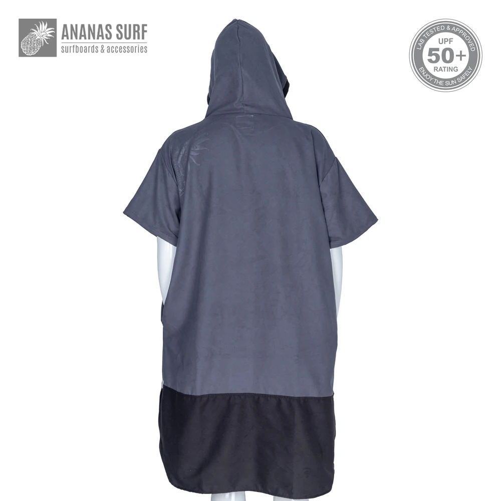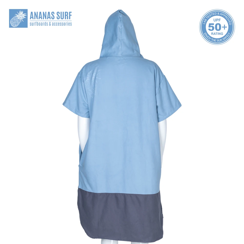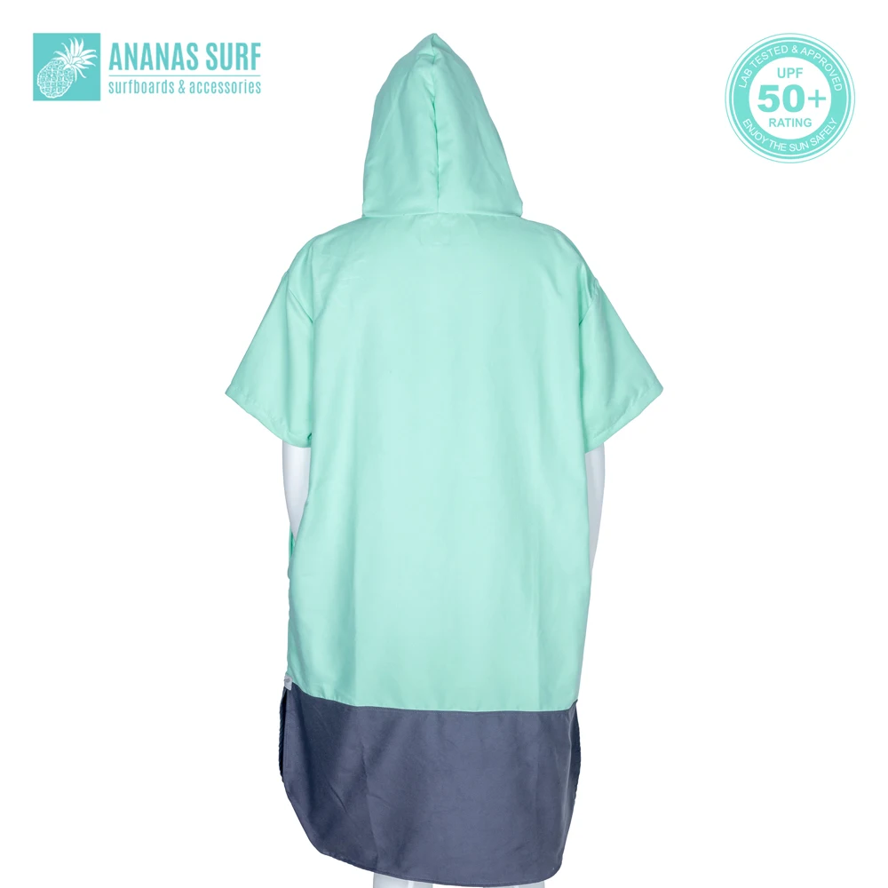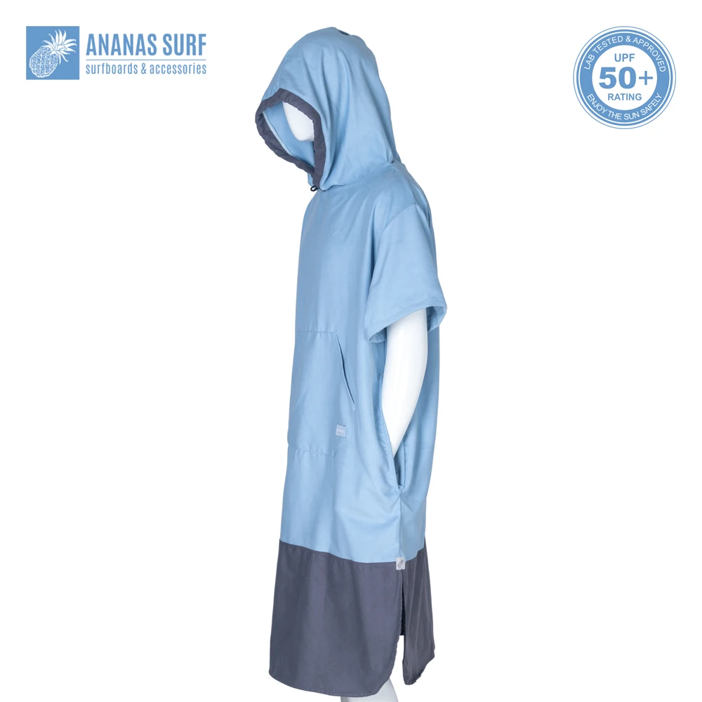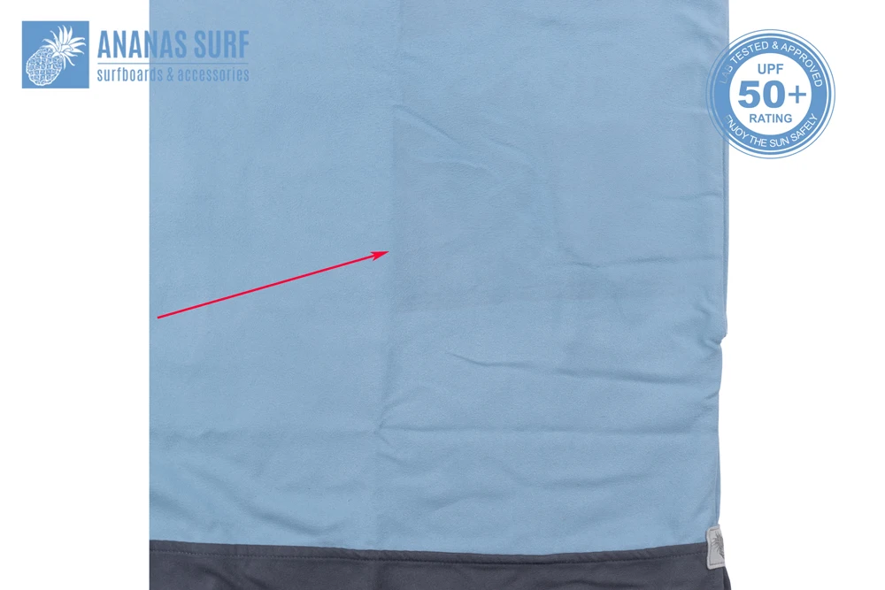 ANANAS SURF beach poncho with open side pocket for easy changing your wet wear is made of quick-drying and super lightweight microfiber suede cloth materials. So also can be used as a beach towel. It’s real small packing size, you’ll always find someplace on the beach for the change you wet wear after surf. Just put it in your bag to bring a poncho along to the spot!