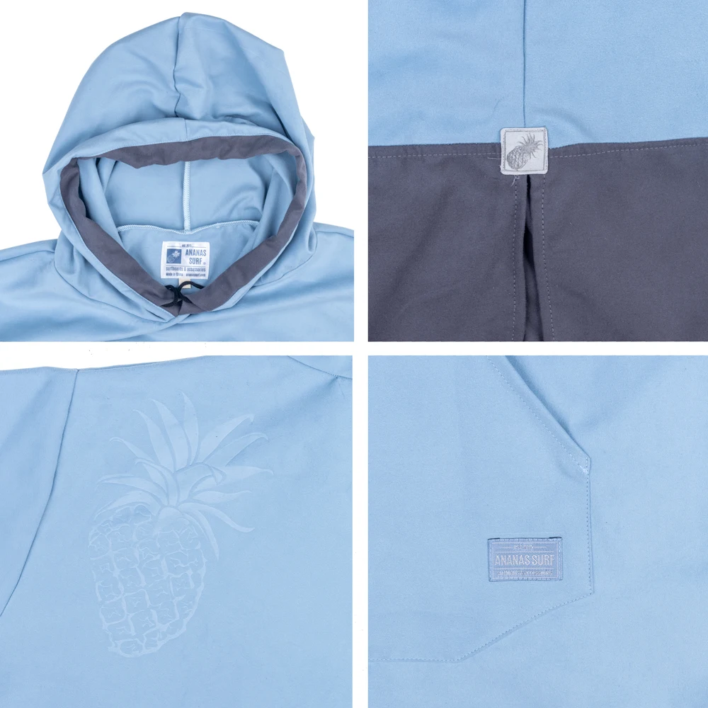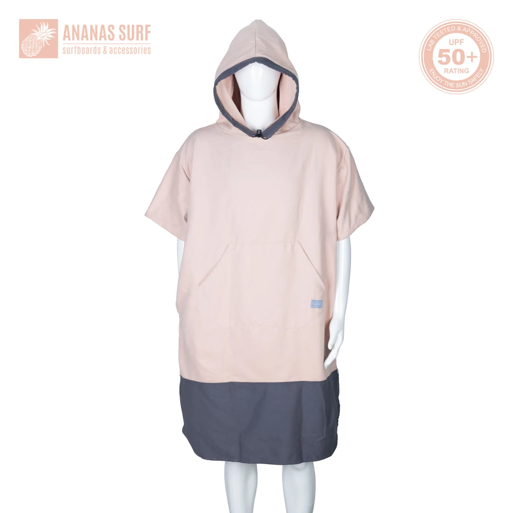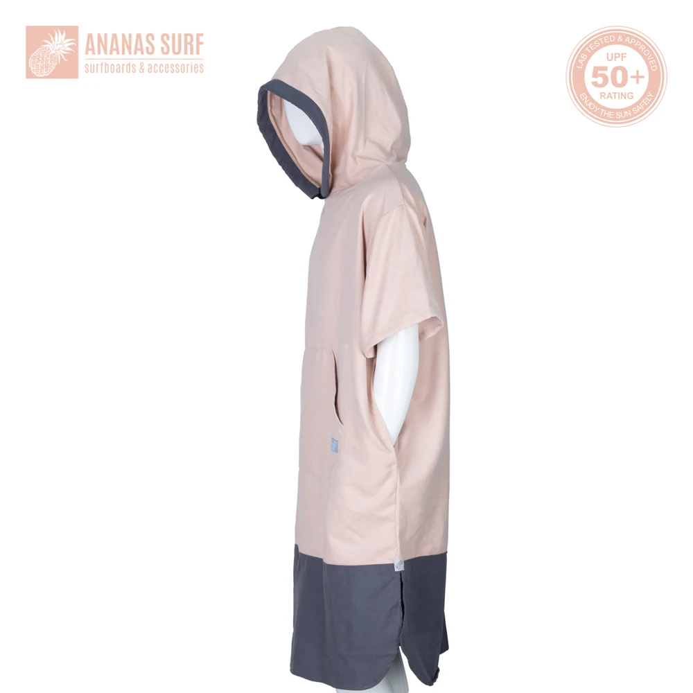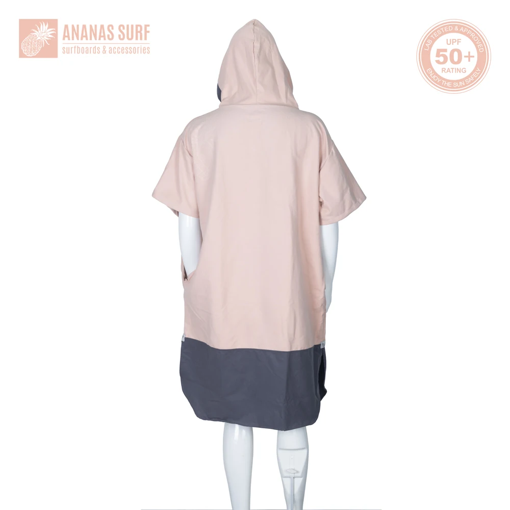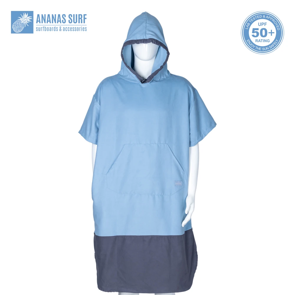 ANANAS SURF beach poncho with open side pocket for easy changing your wet wear is made of quick-drying and super lightweight microfiber suede cloth materials. So also can be used as a beach towel. It’s real small packing size, you’ll always find someplace on the beach for the change you wet wear after surf. Just put it in your bag to bring a poncho along to the spot!